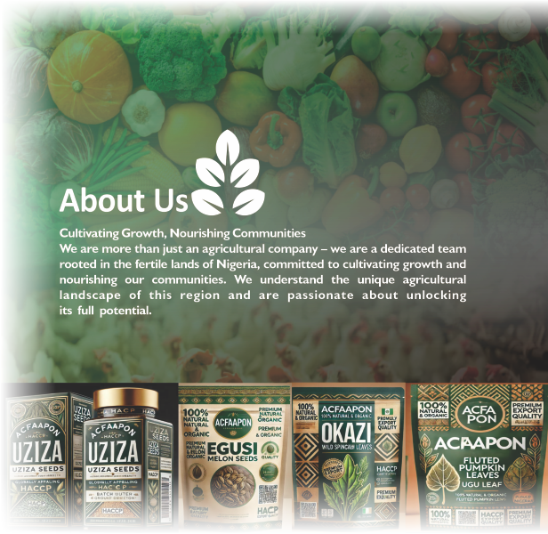 The Association of Commercial Farmers and Agro-Allied Producers of Nigeria (ACFAAPON) is a nationally recognized body dedicated to advancing Nigeria's agricultural sector through sustainable commercial farming, innovative agro-processing, and global market integration. We are a coalition of forward-thinking farmers, processors, exporters, and agribusiness stakeholders, united by the goal of transforming Nigeria into an agricultural powerhouse on the global stage.